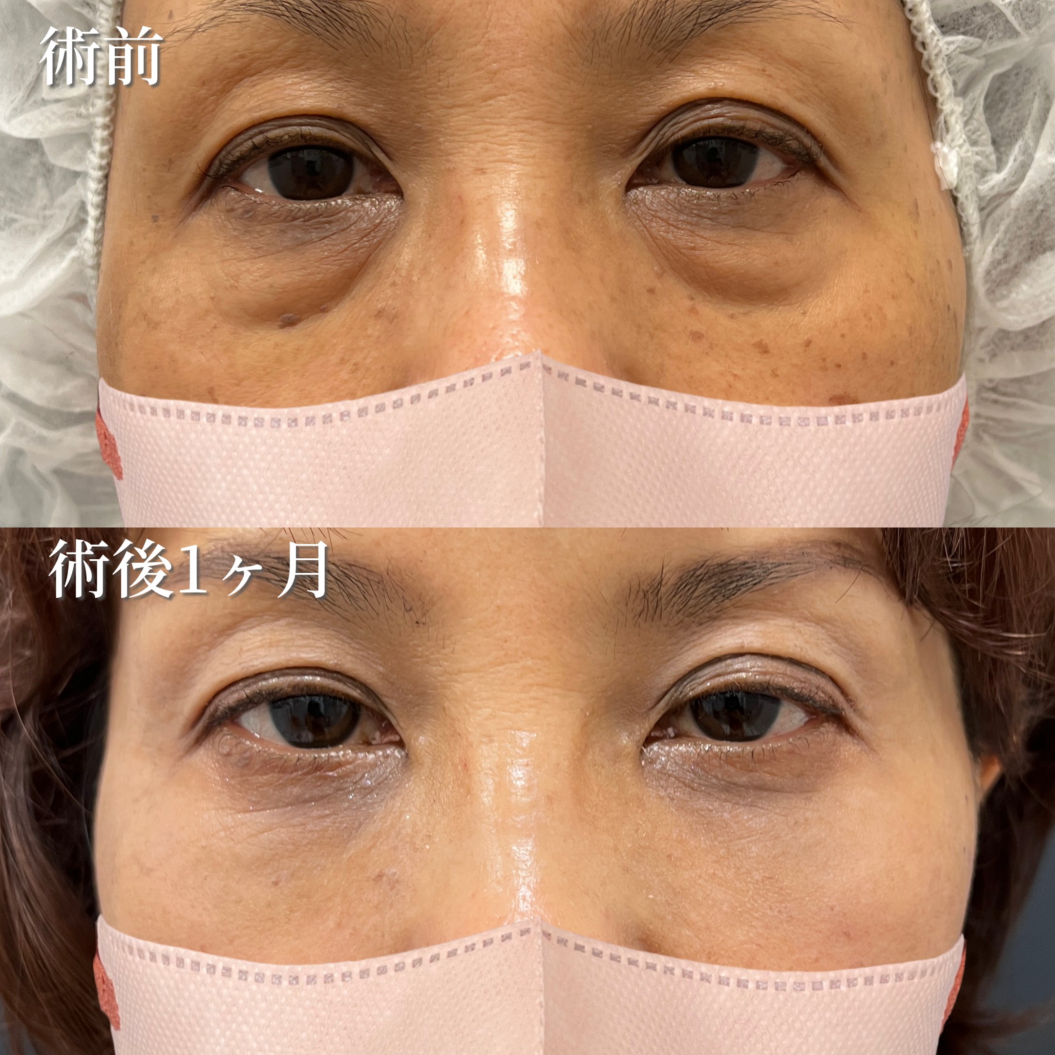 目の下膨らみがかなりあるお目元。術直後からしっかり変化がわかります。疲れ顔・老け顔に見られてしまう原因のクマが無くなると本来の若さを取り戻せます。